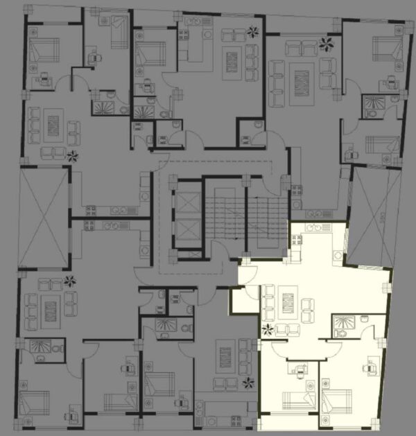 - تعداد پریز های برق طبق مبحث ۱۳ مقررات ملی به اضای هر ۳ متر محیط واحد تامین گردیده است